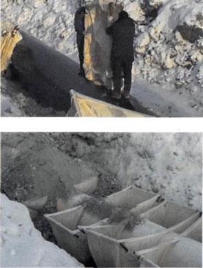 Заполняются ПКБУ грунтом из отвала после монтажа на трубопровод.